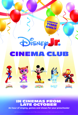 DISNEY JUNIOR CINEMA CLUB 2025 brings together songs, dancing, interactive games, and episodes for your pre-schoolers from late October for a limited time only.